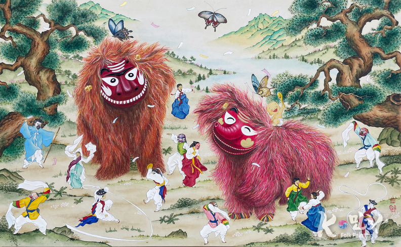우리 조상들은 액을 막고 복을 부르기 위해 사자춤을 추고, 마을 사람들이 함께 모여 흥을 나누며 새해의 길흉을 점쳤습니다. 저는 그 전통적 풍경을 오늘의 감성으로 되살려, 모든 이의 앞날이 평탄한 큰길坦坦大路처럼 열리기를 바라는 마음을 담았습니다.