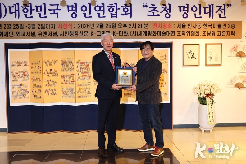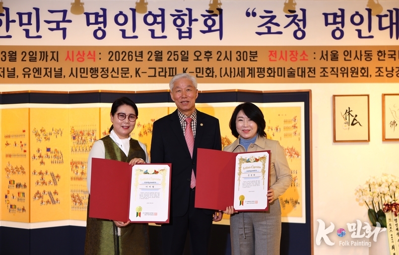 K-민화 김학영 기자 | 서울 인사동 한국미술관이 한국 전통예술의 깊이와 현대적 확장의 가능성을 한 자리에서 조망하는 문화외교의 무대로 거듭났다. 2월 25일 개막한 「대한민국 명인초청대전」은 단순한 전시를 넘어, 대한민국의 정체성을 예술로 선언하는 상징적 자리였다.
