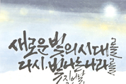 K-민화 이성준 기자 | 글자는 언제부터 예술이 되었을까. 혹은 예술은 언제부터 글자를 필요로 했을까. 정주연 작가의 K-그라피 앞에 서면, 이 오래된 질문은 더 이상 학술적 물음이 아니다. 그것은 지금, 여기서 숨 쉬는 감각이 된다. 화면 위에 놓인 문장은 읽히기보다 먼저 다가오고, 의미는 해석되기보다 먼저 체온을 가진다. “새로운 봄의 시대를 다시, 보내는 나라를...”이 문장은 선언이 아니라 예감이다. 획은 단정하지 않고, 여백은 침묵하지 않는다. 붓의 움직임은 설명을 거부하며, 감정의 속도로 흘러간다. 정주연의 K-그라피는 ‘잘 쓴 글씨’가 아니라 잘 살아 있는 문장이다. 특히 이 작품에서 주목할 점은 글자가 공간을 점유하는 방식이다. 상단의 굵고 강한 문장은 시대를 부르는 목소리처럼 떠 있고, 하단으로 길게 떨어지는 서체는 마치 인간의 사유가 땅으로 뿌리내리는 과정처럼 보인다. 글자는 더 이상 평면에 놓이지 않는다. 서 있는 존재, 혹은 걸어 내려오는 시간이 된다. 배경 역시 단순한 장식이 아니다. 도시의 실루엣 위로 번지는 여명과 노을의 색감은 오늘의 한국 사회, 그리고 그 안에서 다시 시작되기를 갈망하는 개인의 내면을 상징한다. 이는 K-그라피가