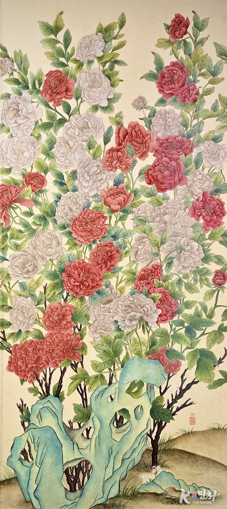 복은 크게 외치지 않아도, 이렇게 차분히 피어날 수 있다고, 모란도는 장식적 회화를 넘어, 공간에 머무는 기운이 된다. 바라보는 이의 마음을 정돈하고, 한 해의 시작에 필요한 부드러운 확신을 건네는 그림이다.