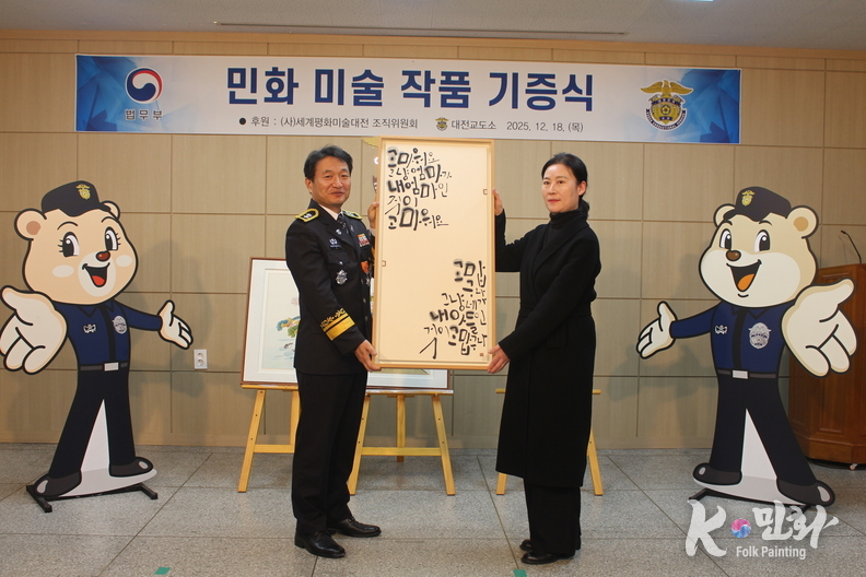 K-민화 김학영 기자 | 연말연시를 맞아 교정행정 복지 향상을 위한 미술작품 기증 행사가 지난 12월 17일부터 18일까지 충북과 대전 지역 교정시설에서 잇따라 열렸다.