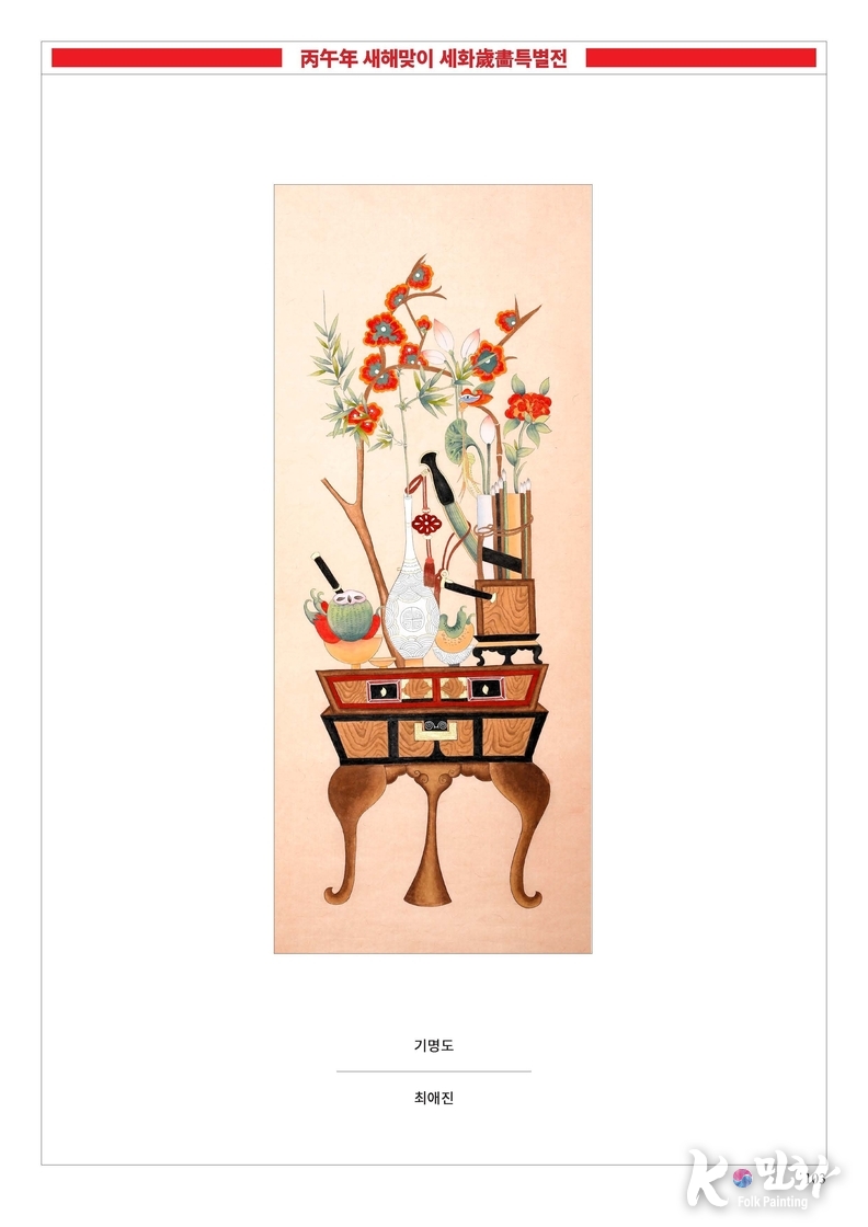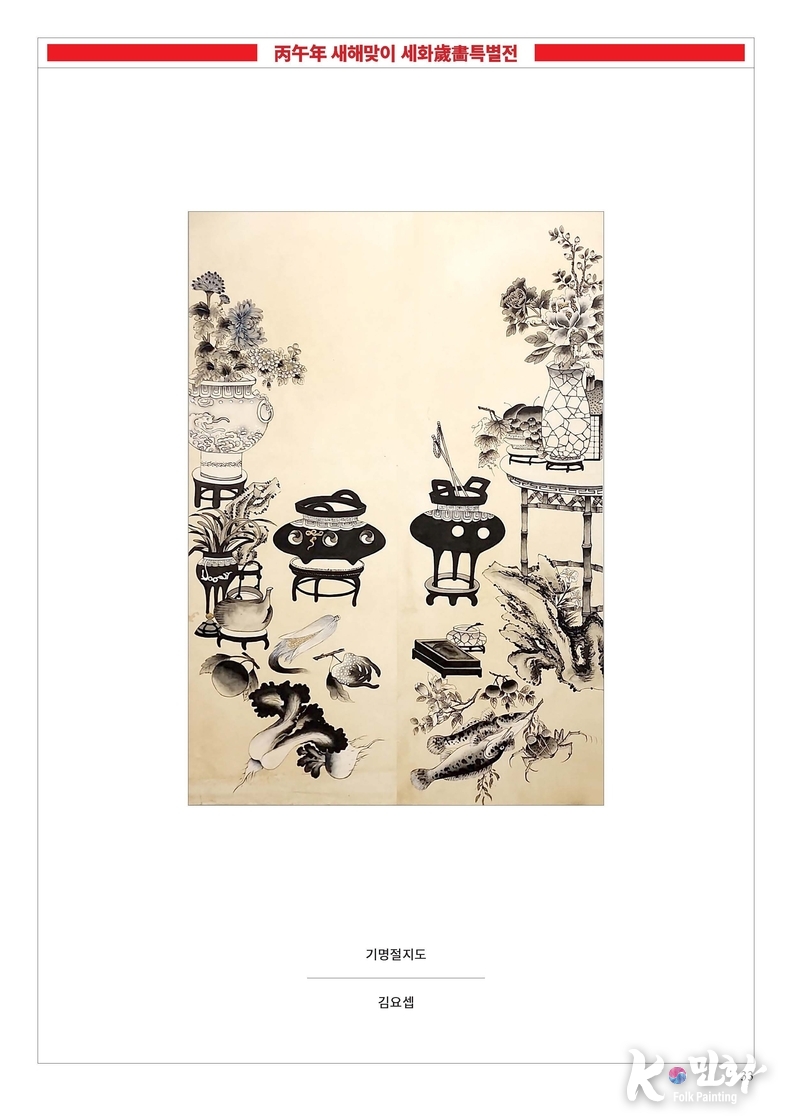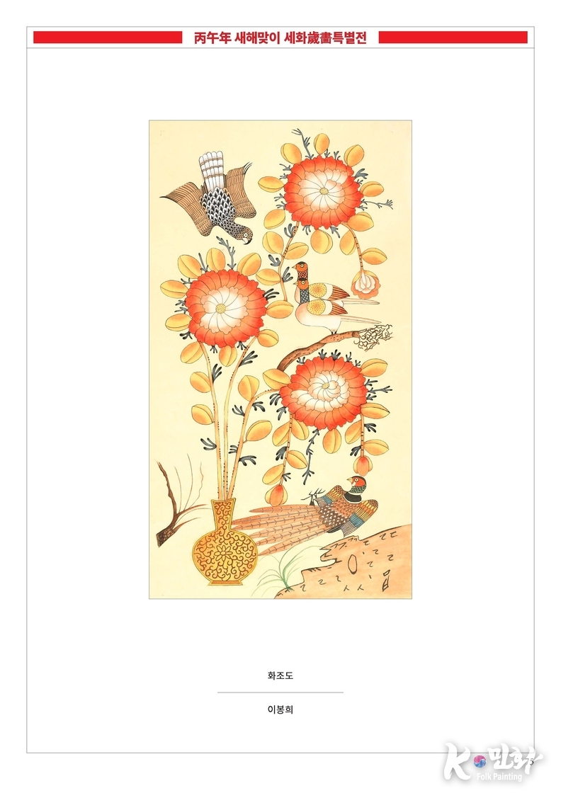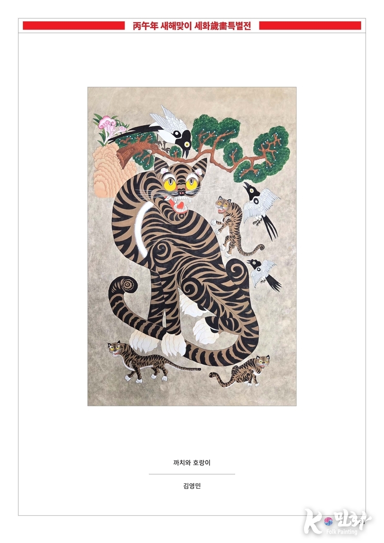 민화는 본래 민간의 그림이었다. 궁중 회화와 달리, 이름 없는 사람들의 소망과 염원, 웃음과 해학이 담긴 생활의 예술이었다. 호랑이는 위엄보다 친근함으로, 꽃은 장식보다 기원의 상징으로 그려졌다. 세화歲畵는 바로 그 민간의 지혜가 새해의 안녕과 복을 기원하며 탄생한 문화였다.