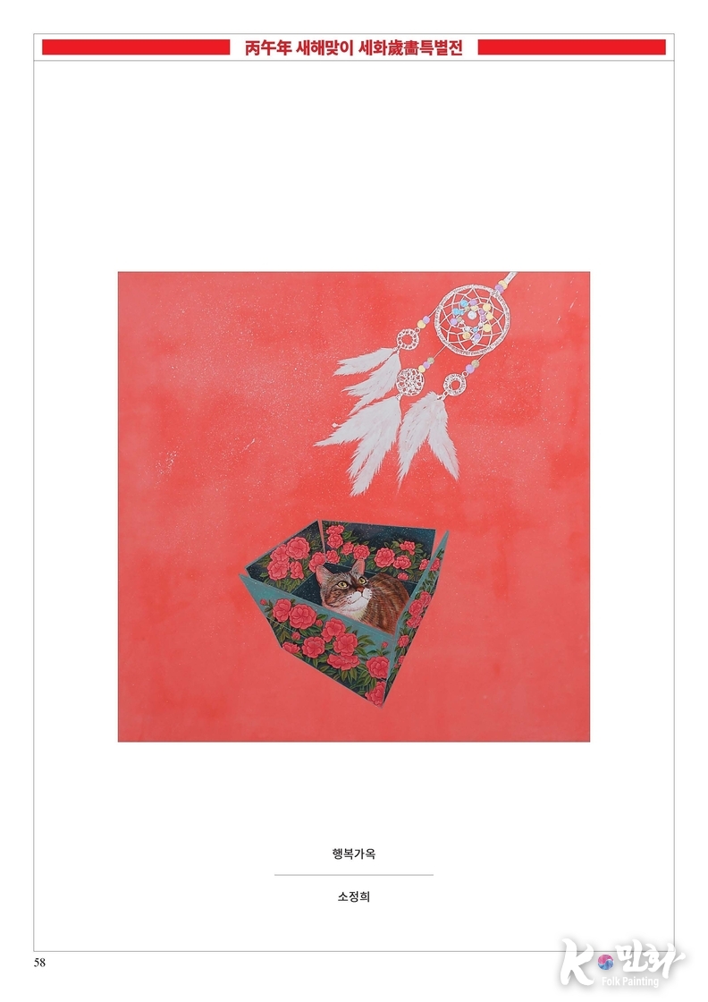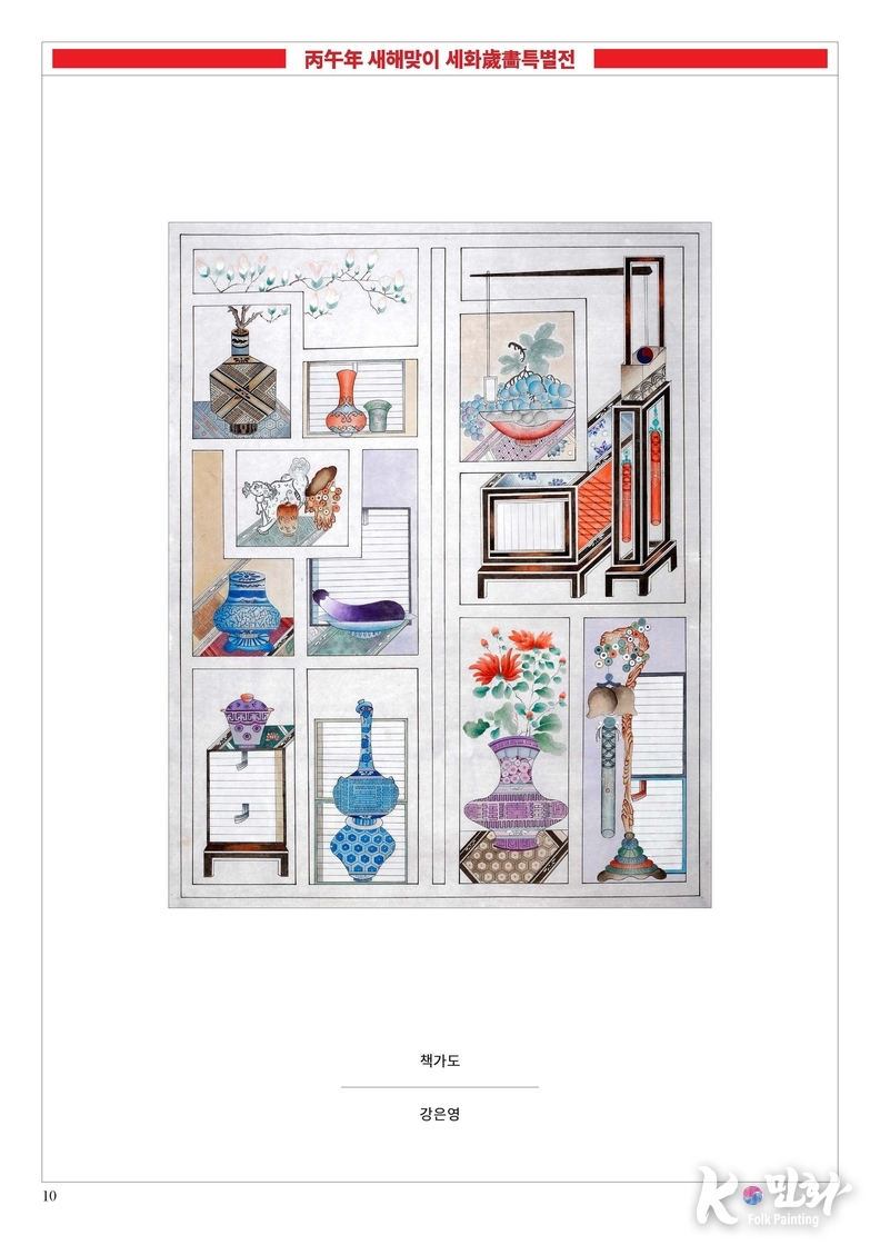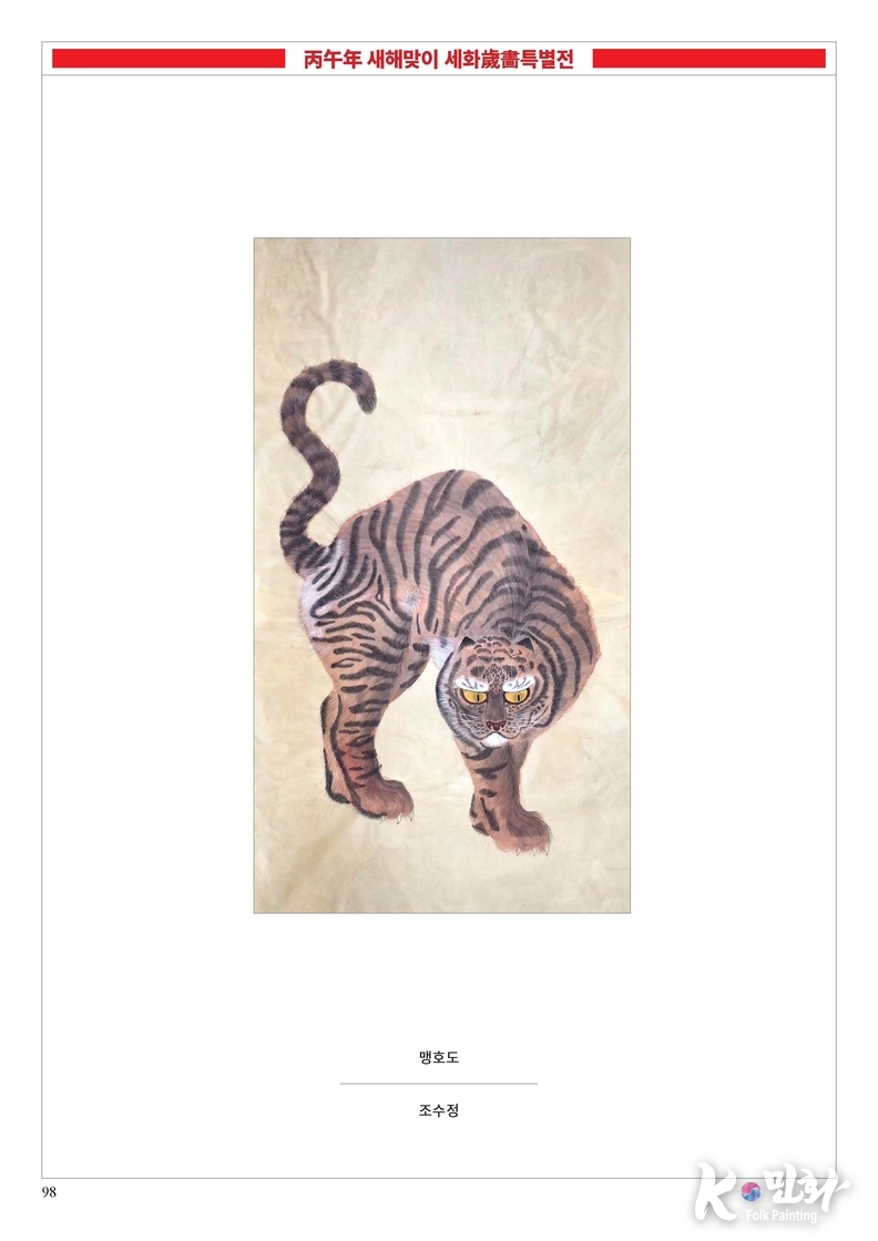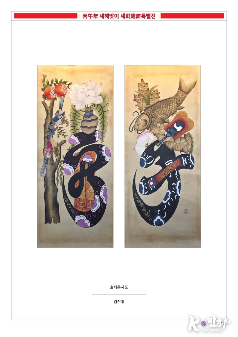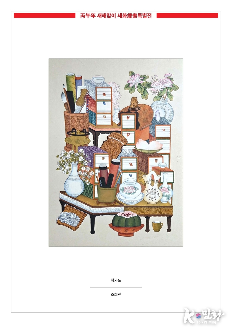 민화는 본래 민간의 그림이었다. 궁중 회화와 달리, 이름 없는 사람들의 소망과 염원, 웃음과 해학이 담긴 생활의 예술이었다. 호랑이는 위엄보다 친근함으로, 꽃은 장식보다 기원의 상징으로 그려졌다. 세화歲畵는 바로 그 민간의 지혜가 새해의 안녕과 복을 기원하며 탄생한 문화였다.