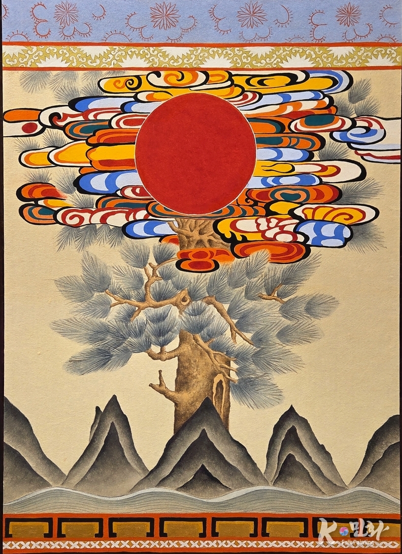 K-민화 이존영 기자 | 해와 달은 원래 하늘의 것이었다. 그러나 민화는 종종 그것들을 땅으로, 삶의 자리로 내려앉힌다. 김정연 작가의 '일월수상도'에서 해와 달은 더 이상 먼 천체가 아니다. 나무의 꼭대기에 머물며, 생명의 시간과 호흡을 함께한다.