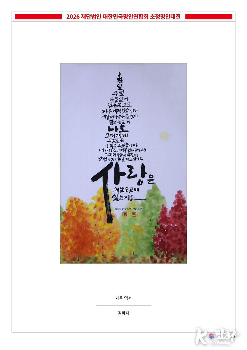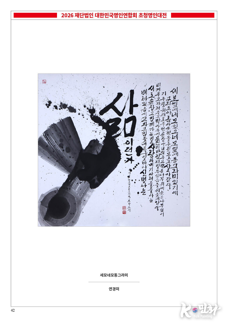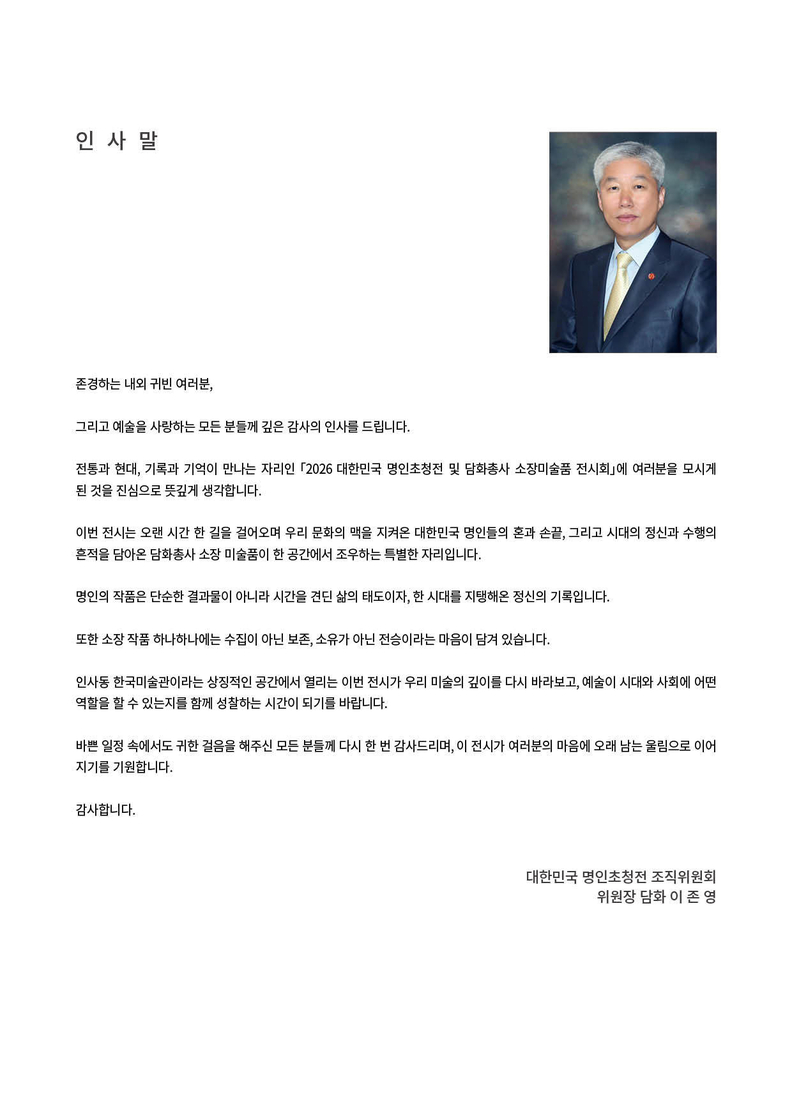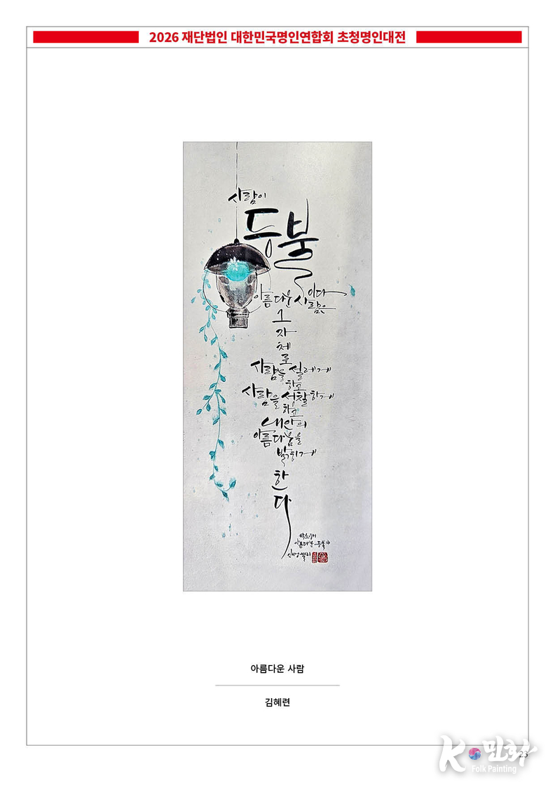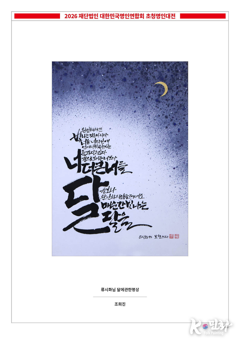 K-민화 이성준 기자 | 재단법인 대한민국 명인연합회가 주최하는 이 행사는 한국 전통문화와 예술의 보존·계승·발전을 목적으로 하는 의미 있는 전시입니다.