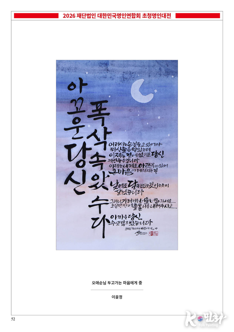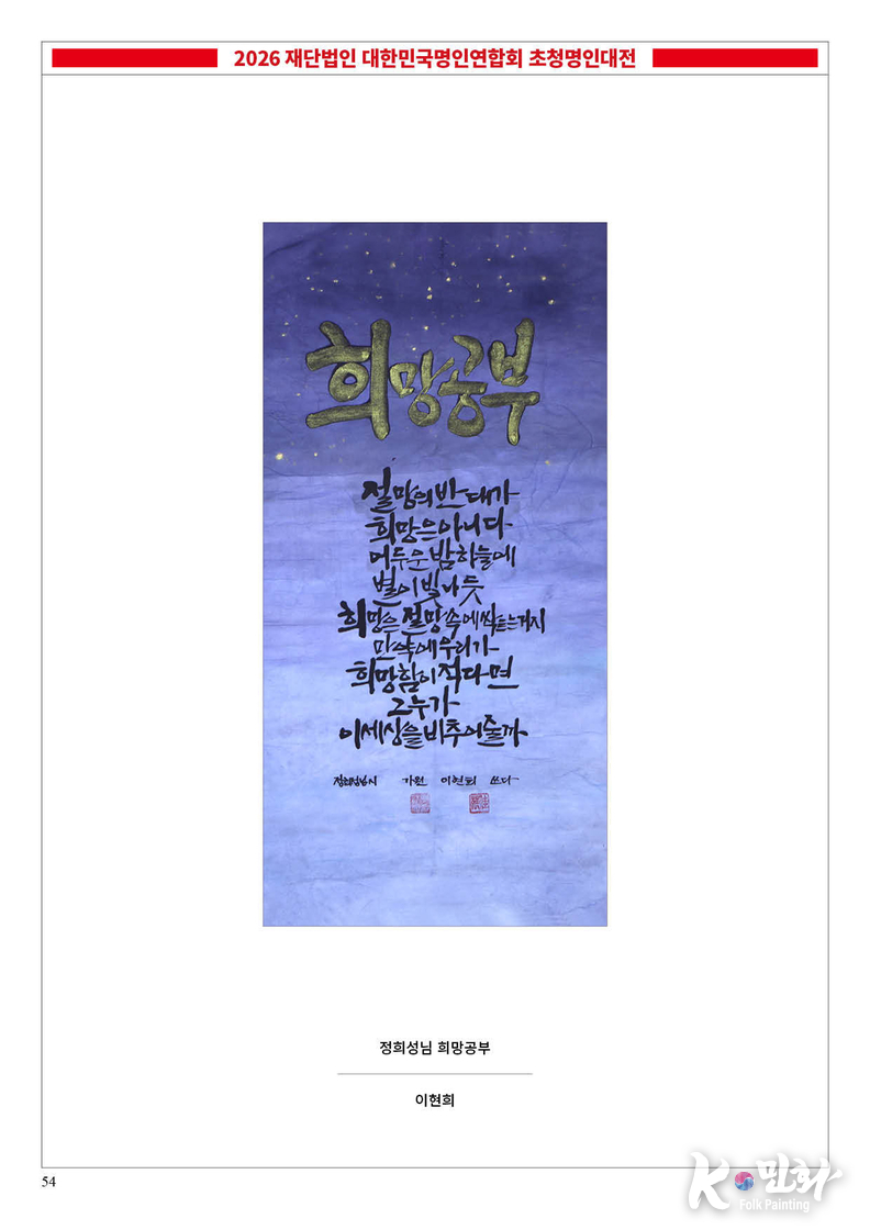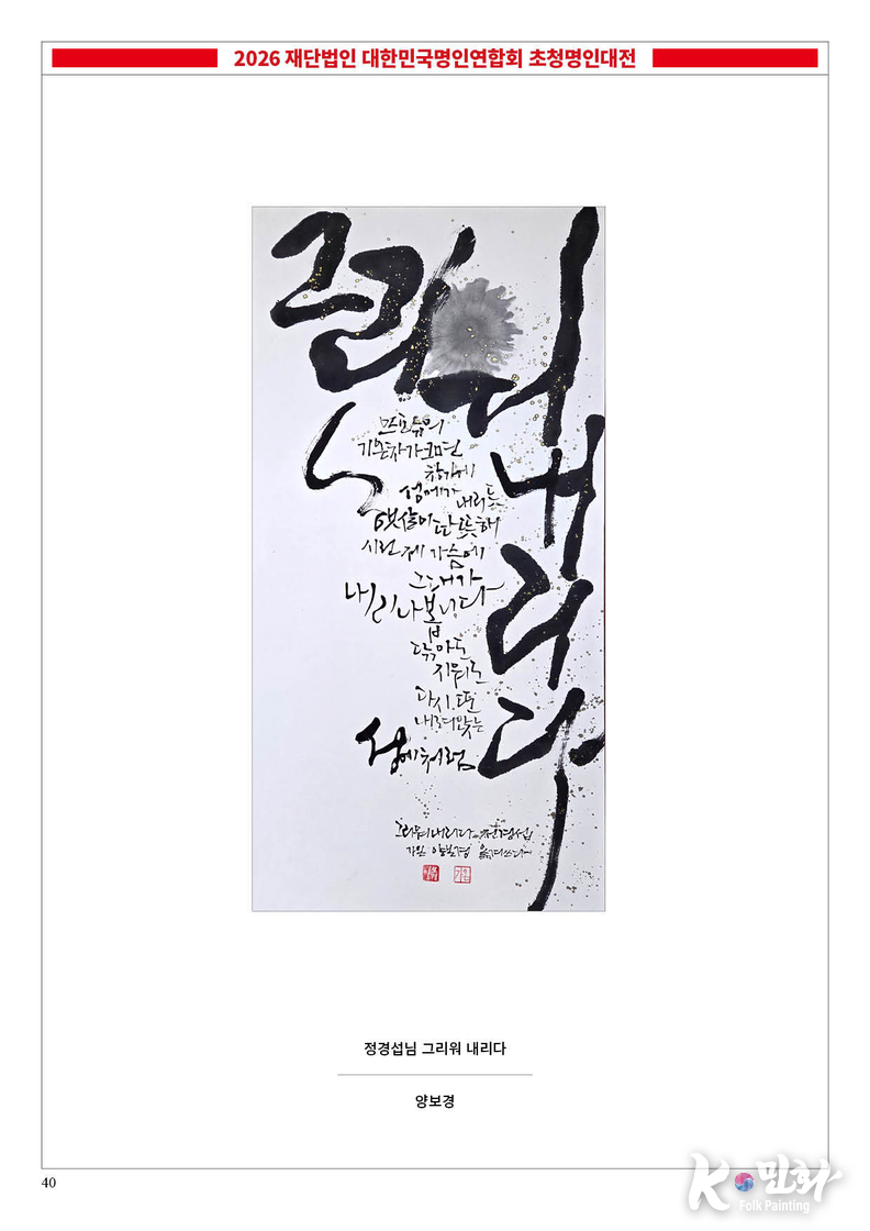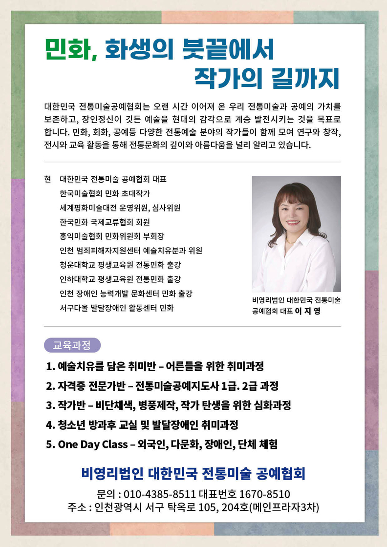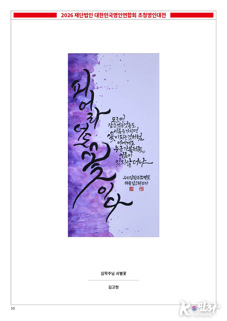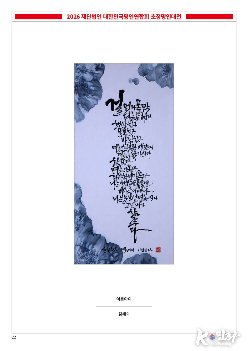 K-민화 이성준 기자 | 재단법인 대한민국 명인연합회가 주최하는 이 행사는 한국 전통문화와 예술의 보존·계승·발전을 목적으로 하는 의미 있는 전시입니다.