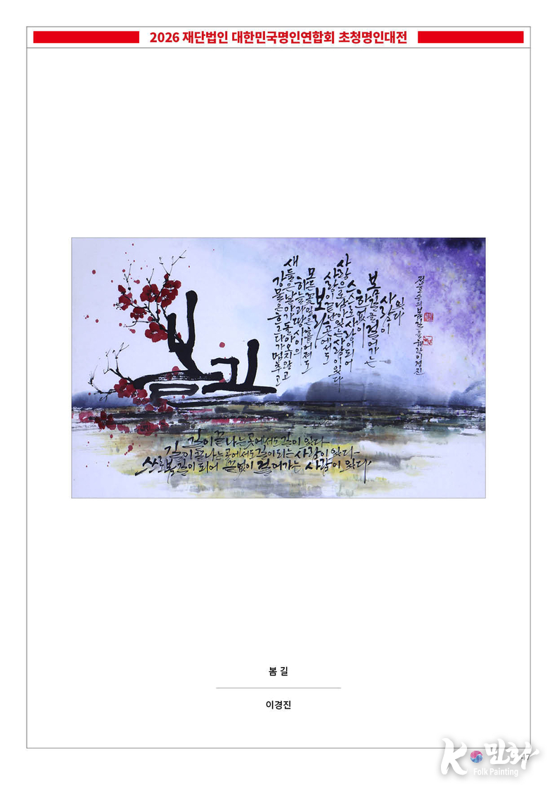 전시기간 : 2026년 2월 25일 (수)~3월 2일 (월)