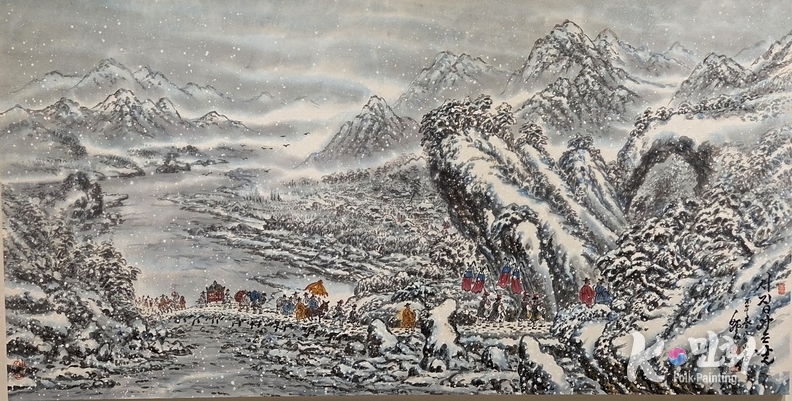 K-민화 이존영 기자 | 본 연구는 백운 작가의 “시집가는 날”을 중심으로, 전통 민화의 서사 구조가 현대적 K-민화로 어떻게 확장되고 있는지를 분석하는 데 목적이 있다. 해당 작품은 눈 덮인 산수 속 전통 혼례 행렬을 묘사하고 있으나, 단순한 전통 재현을 넘어 공간 구성, 색채 상징, 서사 흐름, 공동체적 세계관을 통합적으로 제시한다는 점에서 주목할 필요가 있다.