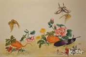 K-민화 이성준 기자 | k-민화에서 정원은 늘 말이 없는 장소였다. 그러나 그 침묵 속에는 삶의 원칙이 숨 쉬고 있었다. 김건하 작가의 ‘화정도’는 그 오래된 침묵을 다시 불러낸다. 이 그림 속 정원에는 위계가 없다. 당근과 가지가 꽃보다 낮지 않고, 국화와 작약이 채소 위에 군림하지 않는다. 나비와 곤충은 장식처럼 머무르지 않고, 순환의 일부로 자연스럽게 스며든다. 이는 질서가 없는 세계가 아니라, 서열이 필요 없는 세계다. 민화는 원래 삶의 그림이었다. 김건하는 그 사실을 과장하지 않는다. 상서도, 길상도라는 이름으로 덧칠된 해석을 걷어내고, 생활의 본래 자리로 그림을 되돌린다. 그래서 이 작품에는 눈을 압도하는 화려함 대신, 마음을 붙드는 균형이 있다. 당근은 땅속에서 자라난다. 보이지 않는 시간 동안 뿌리를 키운 뒤에야 비로소 제 모습을 드러낸다. 가지는 소리 없이 열매를 맺고, 꽃은 피되 스스로를 자랑하지 않는다. 김건하 작가의 화정도는 이 평범한 존재들의 태도를 통해 말한다. 삶의 중심은 늘 조용한 곳에 있다고. 그 위를 오가는 나비와 곤충은 잠시 머물다 떠난다. 그러나 그 짧은 체류가 있어 정원은 살아 움직인다. 먹고사는 문제와 아름다움은 이