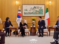 K-민화 이성준 기자 | 지난19일, 청와대에서 열린 한·이탈리아 정상회담 소인수회담장은 외교적 대화와 더불어 문화적 상징이 조용히 교차하는 공간이었다. 이날 회담에서 이재명 대통령과 조르자 멜로니 이탈리아 총리의 뒤편 중앙에는 한국 전통 민화 K-민화 ‘해학반도도海鶴蟠桃圖’가 걸려 눈길을 끌었다. 회담장 중앙, 양국 국기 사이에 배치된 해학반도도는 단순한 장식이 아니었다. 푸른 바다와 학, 신선의 세계를 상징하는 반도蟠桃가 어우러진 이 민화는 장수·평화·번영을 뜻하는 동아시아적 세계관을 담고 있다. 특히 학은 고귀함과 신뢰를, 반도는 영속과 축복을 상징해, 정상 간 만남의 의미를 은유적으로 확장시킨다. 외교 의전에서 회담장 배경은 철저히 계산된 언어다. 이날 선택된 K-민화는 한국이 문화적 자산을 외교의 메시지로 적극 활용하고 있음을 보여준다. 서구 정상외교의 공간에 전통 민화를 배치한 장면은, 한국 문화가 더 이상 주변 장식이 아닌 외교 서사의 주체로 자리했음을 상징적으로 드러냈다. 특히 이탈리아가 르네상스 예술과 인문 전통을 국가 정체성의 핵심으로 삼아온 나라라는 점에서, 한국이 민화를 통해 응답한 이번 연출은 문화 간 존중과 공감의 제스처로 해석된다.
