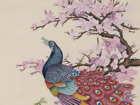 K-민화 이성준 기자 | 전통 민화의 도상 가운데 ‘책거리冊巨里’는 가장 지적이고 상징적이며, 조선 사람들의 학문관·미적 취향·삶의 이상이 고스란히 녹아 있는 장르다. 강현옥 작가의〈책거리〉는 이러한 전통적 주제를 현대적 색채 감각과 섬세한 선묘로 재해석한 작품으로, 지혜의 풍요와 길상의 기운이 화면 가득 흐른다. 책거리는 조선 후기 선비들이 사랑했던 학문·덕성·가치관의 상징이 담긴 그림이다. 책과 문방사우, 그리고 길상 문양이 조화롭게 배치되며 ‘학업의 성취’와 ‘삶의 풍요’를 기원한다. 강현옥 작가는 이 전통적 구도 위에밝고 투명한 채색, 고급스러운 농담 조절, 민화 특유의 데포르메(변형) 표현을 더해 책거리를 생동하는 현대적 장면으로 되살린다. 이 작품에서 가장 강렬한 시각적 중심은 두 마리의 봉황이다. 봉황은 민화에서 왕권, 화평, 고귀함을 상징하는 존재이며, 책거리 속에 등장할 때에는 학문적 성취와 탁월함을 빛내는 존재로 해석된다. 봉황의 화려한 깃털은 성공의 비상飛上을, 부드러운 색의 변화는 여유와 평안을, 대나무와의 조화는 절개와 고결의 상징 을 품고 있다. 대나무는 사군자 중 하나로 흔들리지 않는 절개를 의미하는데, 책거리의 문맥에서는 ‘학문을